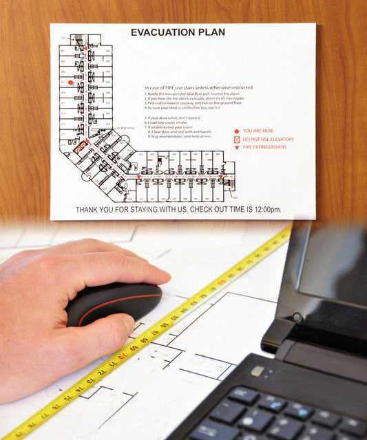 - Receive beautifully designed and safe evacuation floor plans in PDF for you to print out and post up!